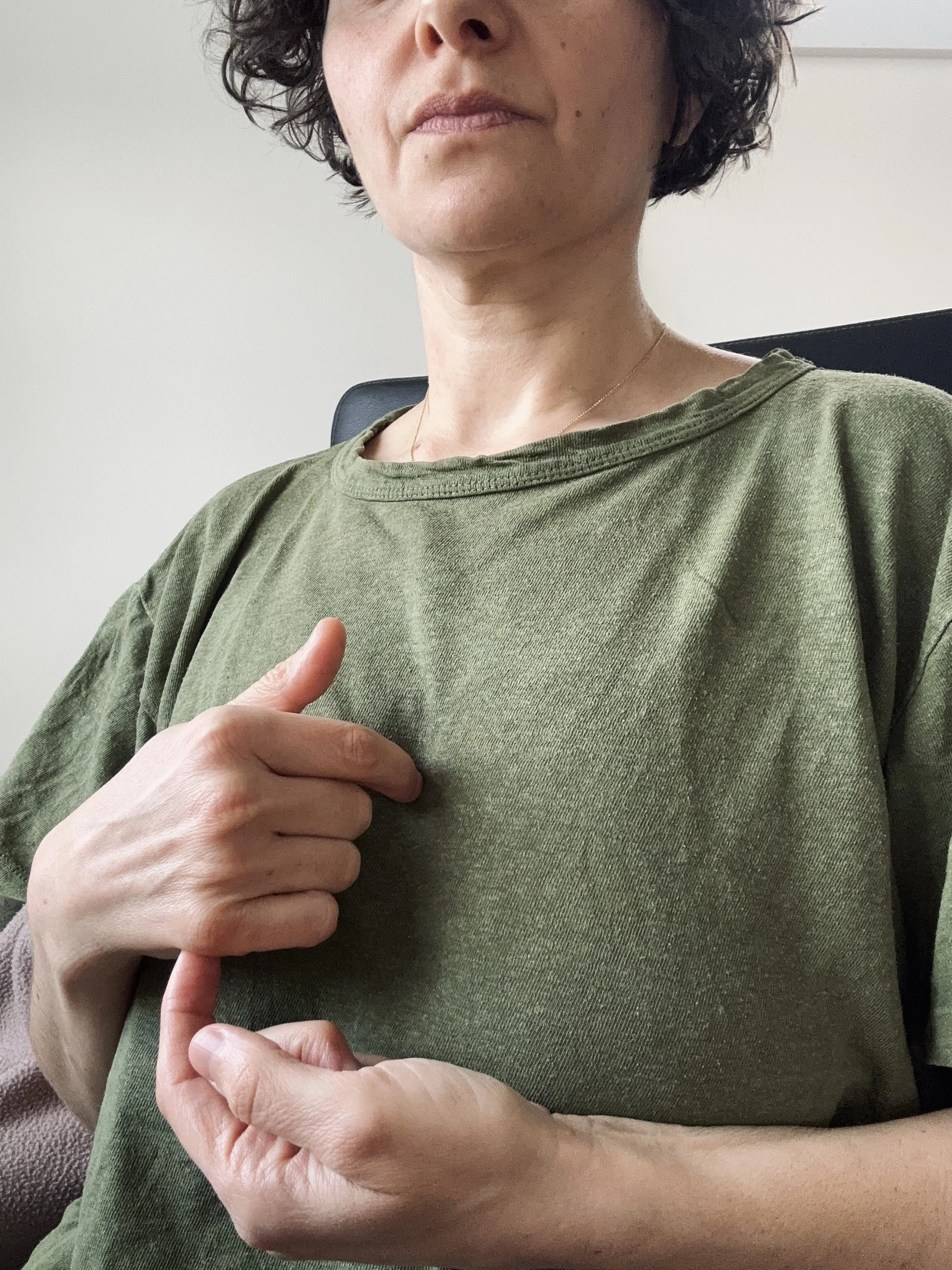ou could also hold it with CV17, the hollow in the middle of the breast bone, which balances the emotions and calms the spirit. Hold for at least 3 minutes.